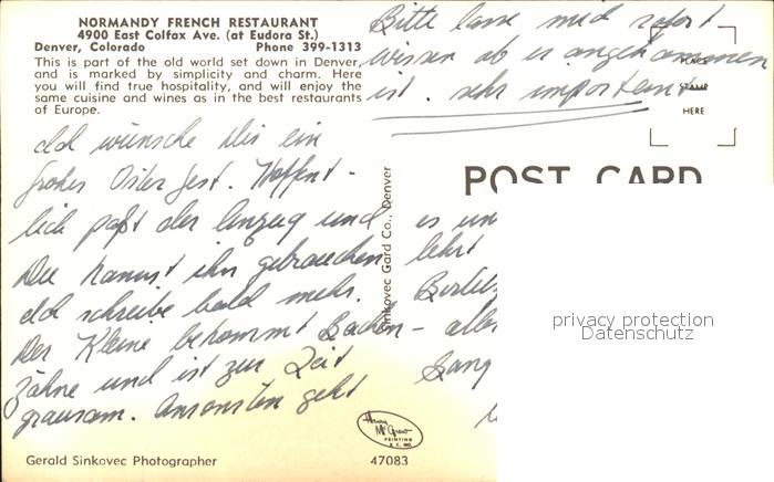 71953321 Denver Colorado Normandy French Restaurant postalisch nicht gelaufen Erhaltung siehe scans KatCode: 14140060000000