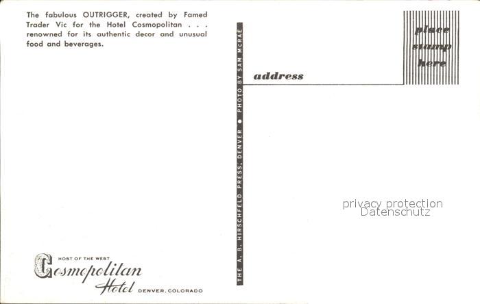 11688486 Denver Colorado Outrigger Restaurant Cosmopolitan Hotel postalisch nicht gelaufen Erhaltung siehe scans KatCode: 14140060000000