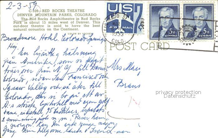 72342344 old postcard Denver Colorado Red Rochs Theatre Mountain Parks postalisch gelaufen Erhaltung siehe scans KatCode: 14140060000000