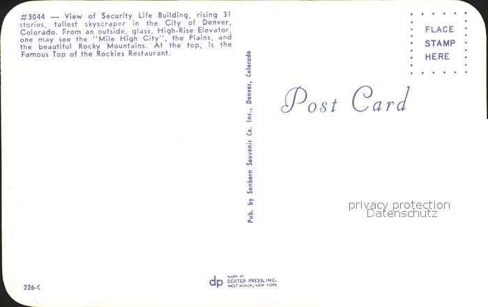 71942437 Denver Colorado Security Life Building postalisch nicht gelaufen Erhaltung siehe scans KatCode: 14140060000000
