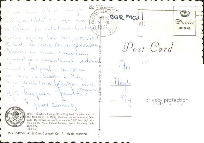 12511046 old postcard Denver Colorado postalisch gelaufen Erhaltung siehe scans KatCode: 14140060000000