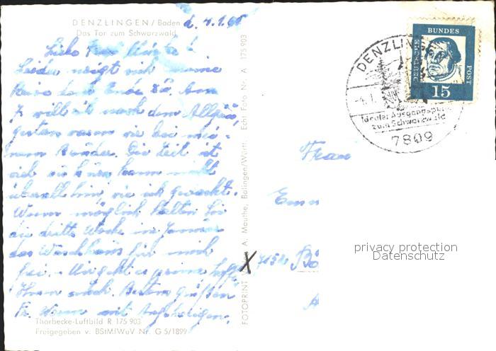 31715306 alte Postkarte Denzlingen Fliegeraufnahme postalisch gelaufen Erhaltung siehe scans KatCode: 11110008316009