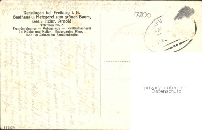 32030110 Denzlingen Gasthaus Metzgerei zum gruenen Baum postalisch nicht gelaufen Erhaltung siehe scans KatCode: 11110008316009