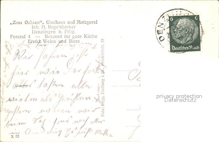 32099371 alte Postkarte Denzlingen Gasthaus zum Ochsen postalisch gelaufen Erhaltung siehe scans KatCode: 11110008316009
