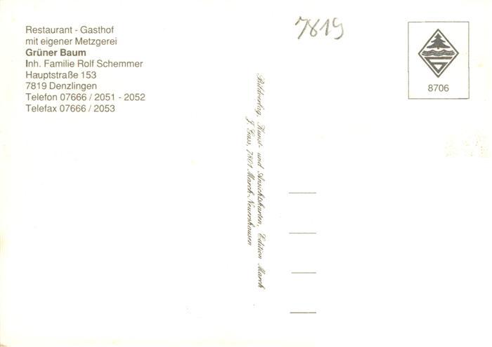 73929126 Denzlingen Restaurant Gasthof Gruener Baum postalisch nicht gelaufen Erhaltung siehe scans [WerneD78] KatCode: 11110008316009