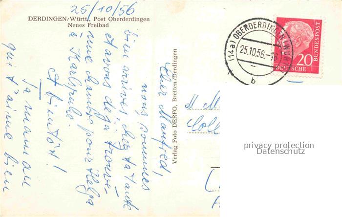74111095 alte Postkarte Derdingen Neues Freibad postalisch gelaufen Erhaltung siehe scans [FriedD77] KatCode: 11110008215059