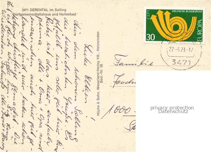74021880 alte Postkarte Derental Dorfgemeinschaftshaus Hallenbad postalisch gelaufen Erhaltung siehe scans [FriedD77] KatCode: 11110003255009