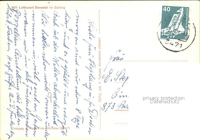 72032139 alte Postkarte Derental im Solling Panorama postalisch gelaufen Erhaltung siehe scans KatCode: 11110003255009