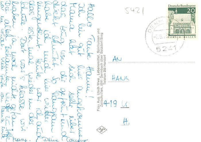 73872034 alte Postkarte Dermbach Sieg Panorama Kirche postalisch gelaufen Erhaltung siehe scans [WerneD78] KatCode: 11110007132050