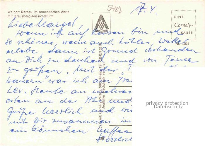 74054077 Dernau Ahr Ahrweiler Rheinland-Pfalz Panorama Weinort im Ahrtal Weinbrunnen Krausberg-Aussichtsturm postalisch nicht gelaufen Erhaltung siehe scans [FriedD77] KatCode: 11110007131017