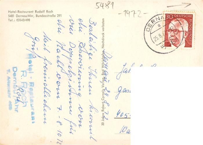 73871904 alte Postkarte Dernau Ahr Hotel Restaurant Roch postalisch gelaufen Erhaltung siehe scans [FriedD77] KatCode: 11110007131017