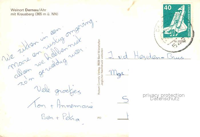 72864912 alte Postkarte Dernau Ahr Krausberg postalisch gelaufen Erhaltung siehe scans [NatalD47] KatCode: 11110007131017