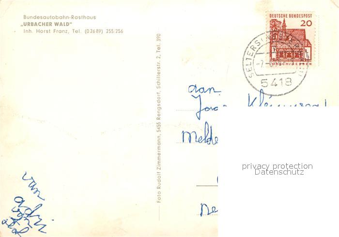 72944632 alte Postkarte Dernbach Pfalz Bundesautobahn Rasthaus Urbacher Wald Restaurant postalisch gelaufen Erhaltung siehe scans [FriedD77] KatCode: 11110007337017
