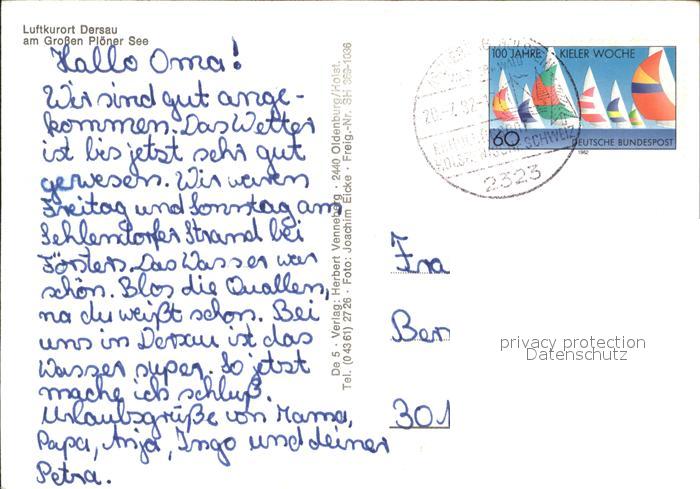 72126038 alte Postkarte Dersau Camping am Grossen Ploener See Fliegeraufnahme postalisch gelaufen Erhaltung siehe scans KatCode: 11110001057015