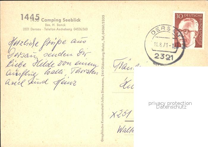72108231 alte Postkarte Dersau Camping Seeblick postalisch gelaufen Erhaltung siehe scans KatCode: 11110001057015