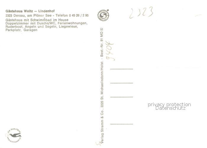 73642738 Dersau Gaestehaus Weitz Lindenhof Garten am Ploener See Naturpark Holsteinische Schweiz postalisch nicht gelaufen Erhaltung siehe scans [FriedD77] KatCode: 11110001057015