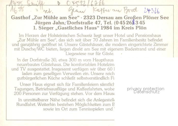 72969890 Dersau Gasthof Zur Muehle am See postalisch nicht gelaufen Werbekarte (keine Postkarte) Erhaltung siehe scans [LiesaD40] KatCode: 11110001057015