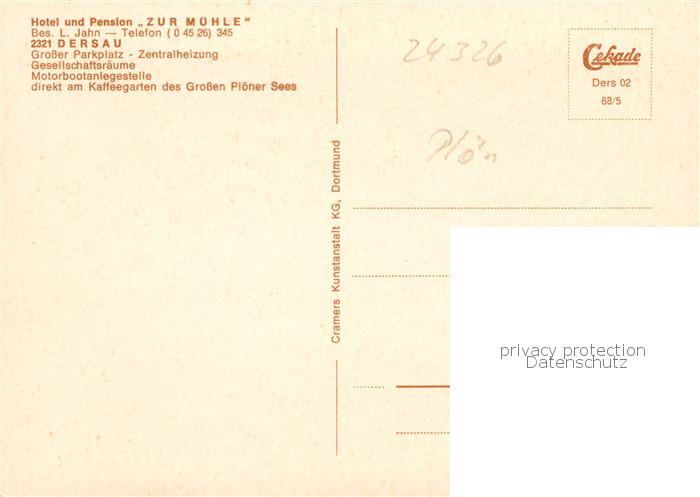 73867919 Dersau Hotel Pension zur Muehle Gastraum Park Uferpromenade am Ploener See postalisch nicht gelaufen Erhaltung siehe scans [FriedD77] KatCode: 11110001057015