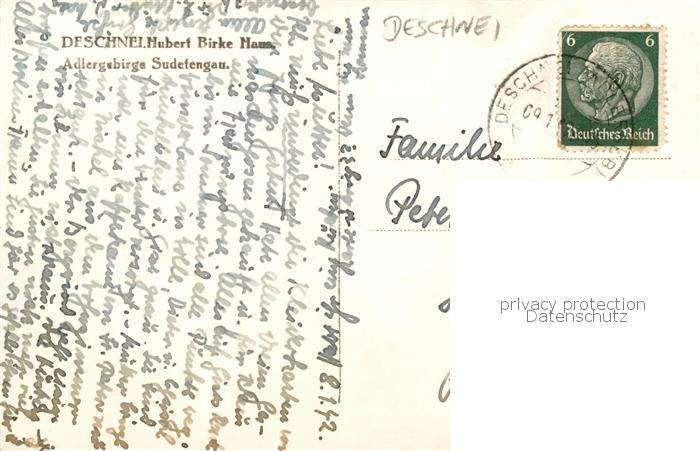 73821026 Deschnei Adlergebirge Destne v Orlickych Horach CZ Birke Haus postalisch gelaufen Erhaltung siehe scans [FriedD77] old postcard Frie Katcode 11520