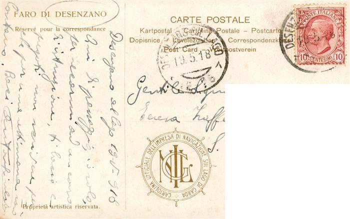 73971129 old postcard Desenzano del Garda IT Ansicht vom Gardasee aus Hafen Kuenstlerkarte postalisch gelaufen Erhaltung siehe scans [FriedD77] KatCode: 11240