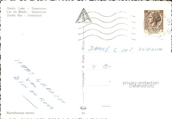 old postcard Desenzano Lago di Garda Hafen mit Personenschiff Regatta postalisch gelaufen Erhaltung siehe scans