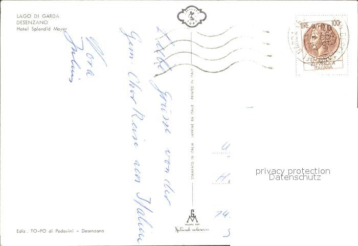 old postcard Desenzano Lago di Garda Hotel Splendid Mayer postalisch gelaufen Erhaltung siehe scans