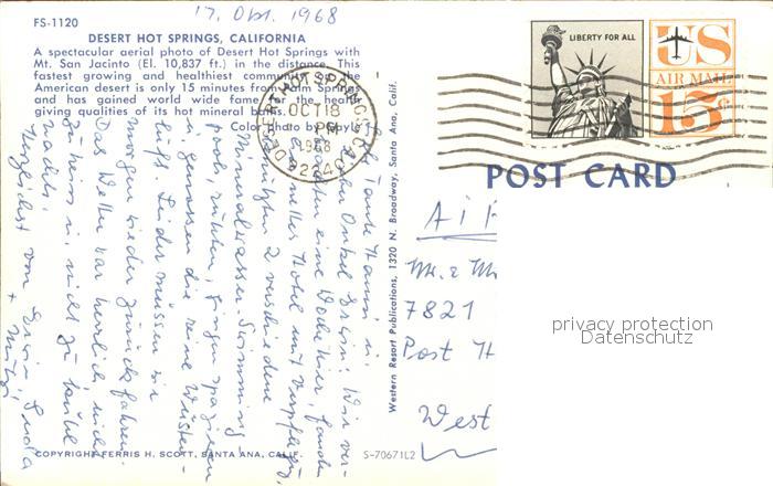 11693867 old postcard Desert Hot Springs Panorama with Mt San Jacinto aerial view postalisch gelaufen Erhaltung siehe scans KatCode: 14140050000000