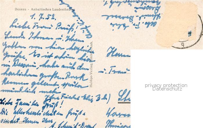 73574067 alte Postkarte Dessau-Rosslau Anhaltisches Landestheater postalisch gelaufen Erhaltung siehe scans [FriedD77] KatCode: 11110015001000