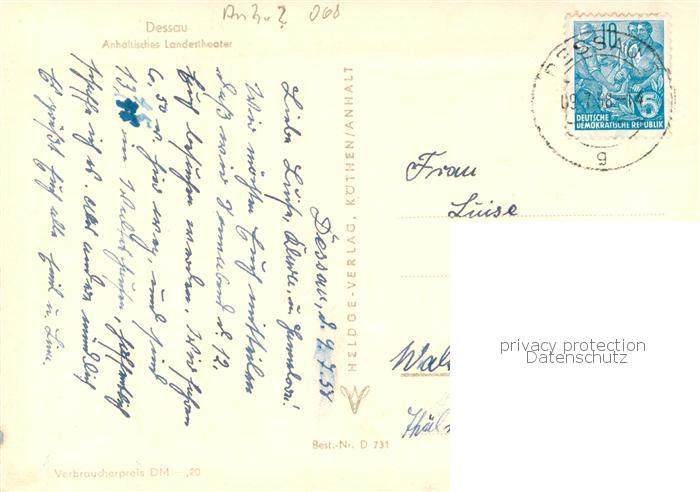 73753571 alte Postkarte Dessau-Rosslau Anhaltisches Landestheater postalisch gelaufen Erhaltung siehe scans [FriedD77] KatCode: 11110015001000
