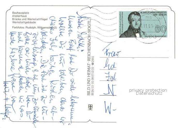 73174780 alte Postkarte Dessau-Rosslau Bauhaus Atelierhaus Bruecke Werkstattfluegel postalisch gelaufen Erhaltung siehe scans [NatalD47] KatCode: 11110015001000