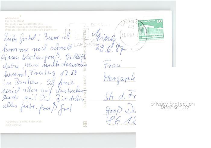 72199532 alte Postkarte Dessau-Rosslau Bauhaus Atelierhaus Fachschule Werkstatt postalisch gelaufen Erhaltung siehe scans KatCode: 11110015001000