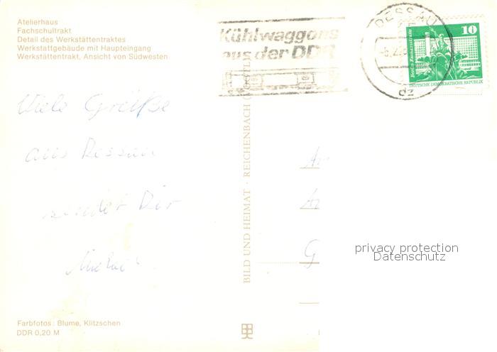 73305993 alte Postkarte Dessau-Rosslau Bauhaus Atelierhaus Fachschultrakt Werkstaetten postalisch gelaufen Erhaltung siehe scans [FriedD77] KatCode: 11110015001000