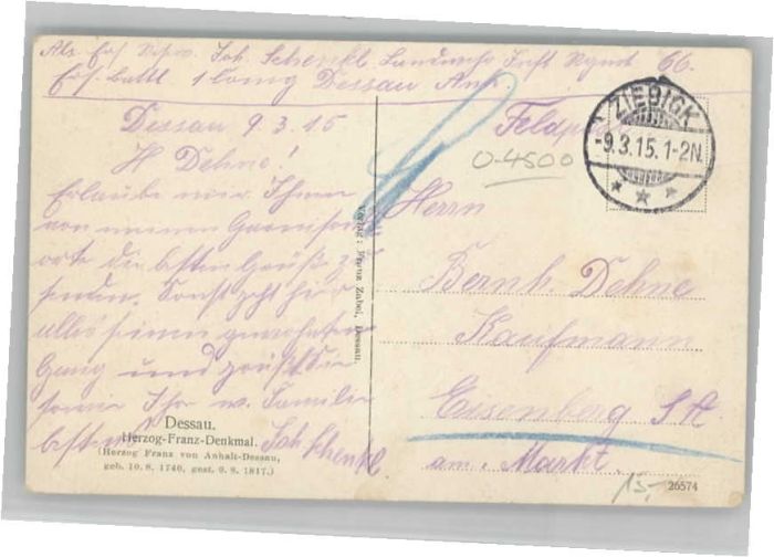 40621320 Dessau-Rosslau Dessau Neumarkt Johanniskirche Herzog-Franz-Denkmal KatCode 11110015001000