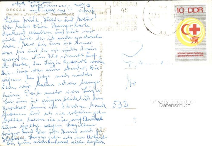 72118544 alte Postkarte Dessau-Rosslau Gaststaette Teehaeuschen postalisch gelaufen Erhaltung siehe scans KatCode: 11110015001000