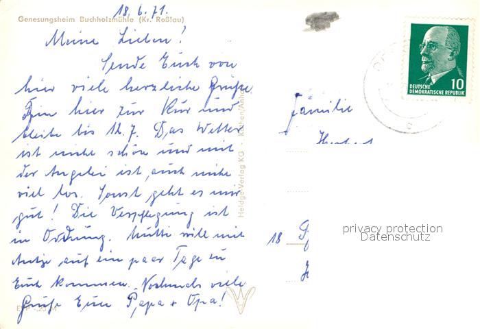 72925684 alte Postkarte Dessau-Rosslau Genesungsheim Buchholzmuehle postalisch gelaufen Erhaltung siehe scans [PaolaD17] KatCode: 11110015001000