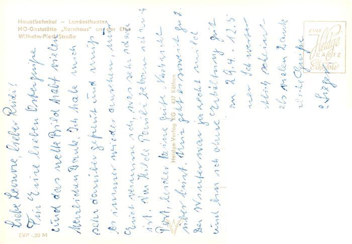 73899990 Dessau-Rosslau Hauptbahnhof Landestheater HOG Kornhaus an der Elbe Wilhelm Pieck Strasse postalisch nicht gelaufen Erhaltung siehe scans [WerneD78] KatCode: 11110015001000