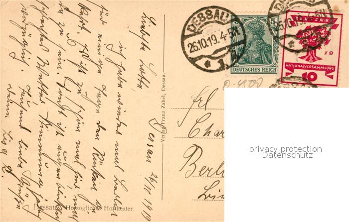 43497772 alte Postkarte Dessau-Rosslau Herzogliches Hoftheater postalisch gelaufen Erhaltung siehe scans [KathaD81] KatCode: 11110015001000