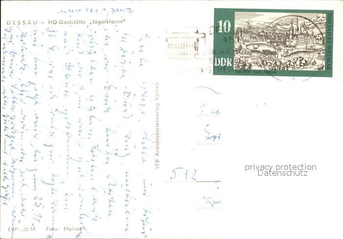 72074626 alte Postkarte Dessau-Rosslau HO Gasstaette Jaegerklause postalisch gelaufen KatCode: 11110015001000