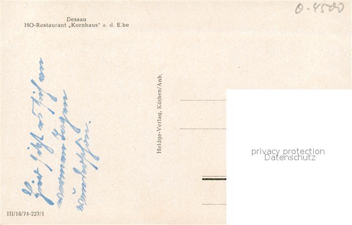 43497761 Dessau-Rosslau HO Restaurant Kornhaus postalisch nicht gelaufen Erhaltung siehe scans [KathaD81] KatCode: 11110015001000