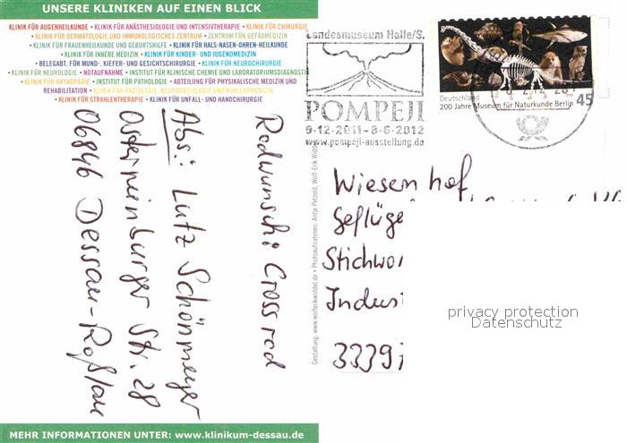 72681451 alte Postkarte Dessau-Rosslau Klinikum in der Bauhausstadt postalisch gelaufen Erhaltung siehe scans [LiesaD40] KatCode: 11110015001000