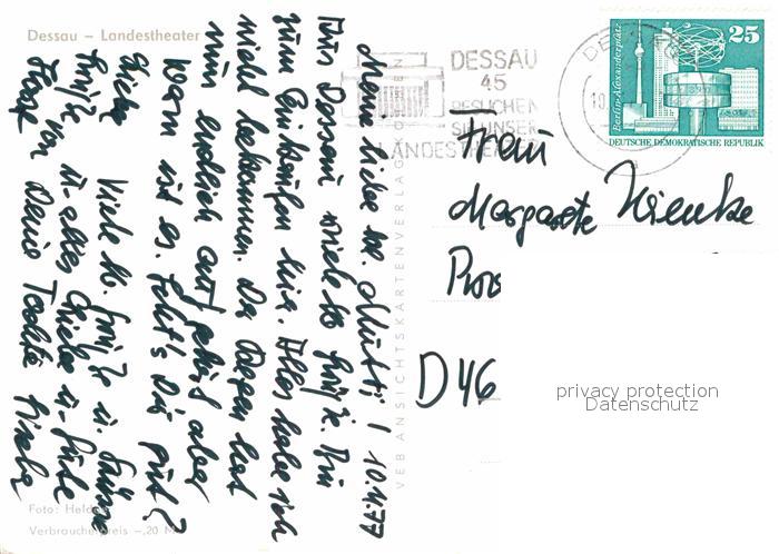 72715532 alte Postkarte Dessau-Rosslau Landestheater postalisch gelaufen Erhaltung siehe scans [FriedD77] KatCode: 11110015001000