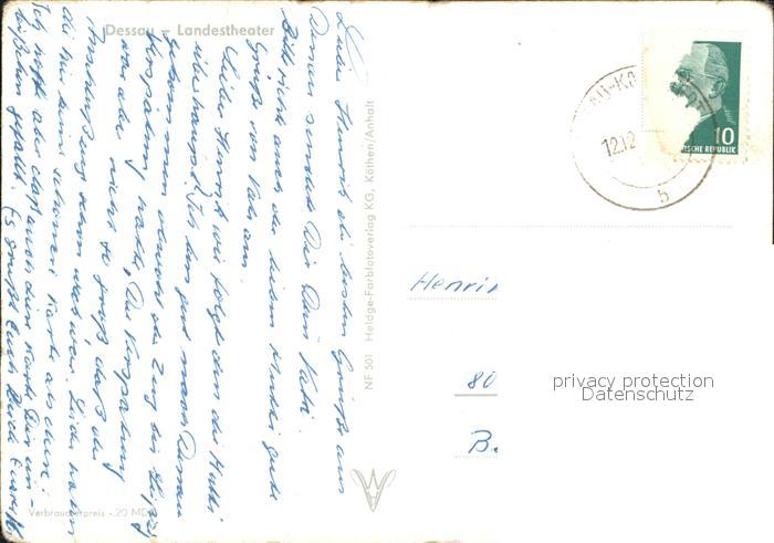 72586800 alte Postkarte Dessau-Rosslau Landestheater postalisch gelaufen Erhaltung siehe scans [WerneD78] KatCode: 11110015001000