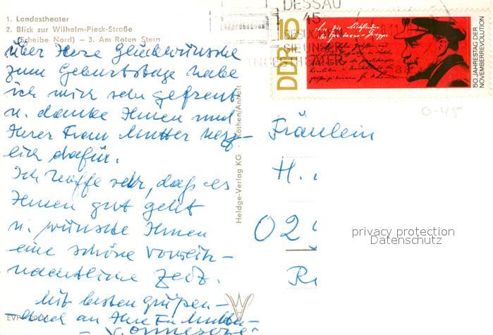 73032716 alte Postkarte Dessau-Rosslau Landestheater Wilhelm Pieck Strasse Roter Stern postalisch gelaufen Erhaltung siehe scans [KathaD81] KatCode: 11110015001000