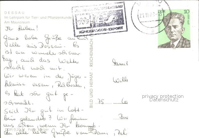 72008172 alte Postkarte Dessau-Rosslau Lehrpark Tier- und Pflanzenkunde Mausoleum postalisch gelaufen Erhaltung siehe scans KatCode: 11110015001000