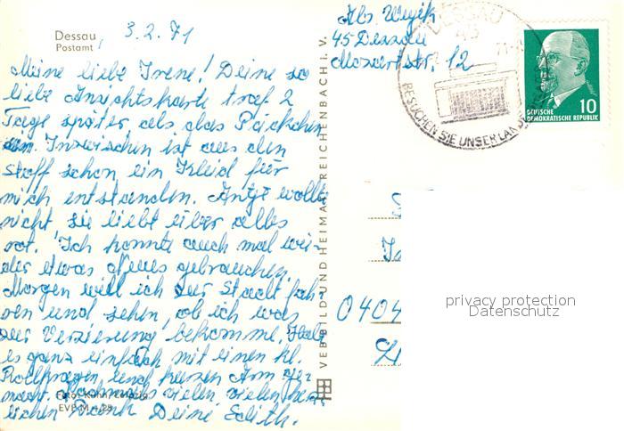 72920429 alte Postkarte Dessau-Rosslau Postamt postalisch gelaufen Erhaltung siehe scans [LiesaD40] KatCode: 11110015001000
