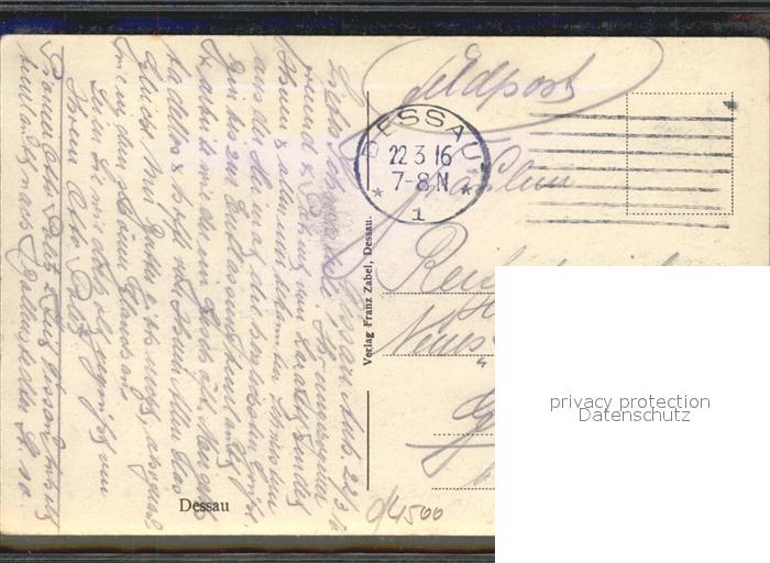 42417974 alte Postkarte Dessau-Rosslau Rathaus Kleiner Markt Mausoleum Schloss Herzog Friedrich Denkmal postalisch gelaufen Feldpost Erhaltung siehe scans KatCode: 11110015001000
