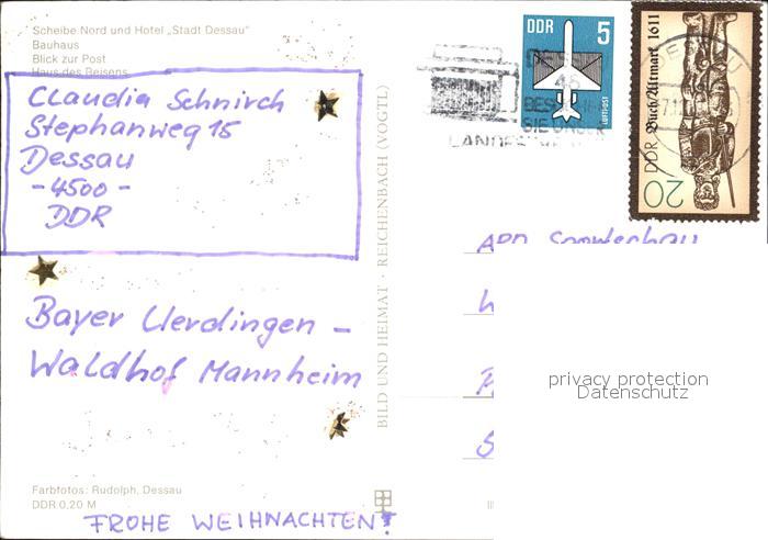 72414944 alte Postkarte Dessau-Rosslau Scheibe Nord Hotel Stadt Dessau Bauhaus Blick zur Post postalisch gelaufen Erhaltung siehe scans KatCode: 11110015001000