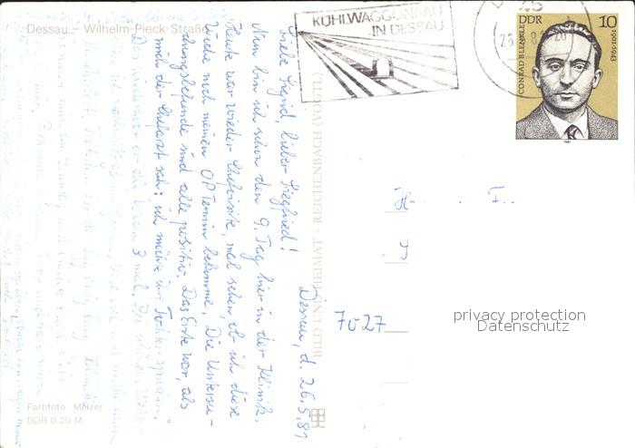 72067741 alte Postkarte Dessau-Rosslau Wilhelm Pieck Strasse postalisch gelaufen Erhaltung siehe scans KatCode: 11110015001000