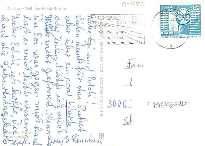 73157213 alte Postkarte Dessau-Rosslau Wilhelm Pieck Strasse postalisch gelaufen Erhaltung siehe scans [FriedD77] KatCode: 11110015001000