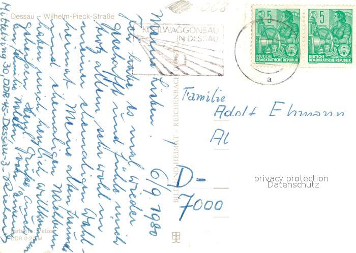 73065359 alte Postkarte Dessau-Rosslau Wilhelm Pieck Strasse postalisch gelaufen Erhaltung siehe scans [FriedD77] KatCode: 11110015001000